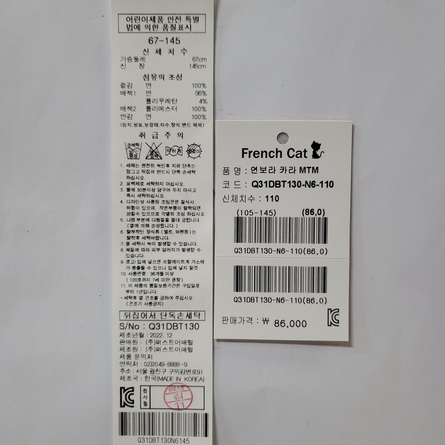 겉감 면100배색1 면96 / 폴리우레탄4배색2 폴리에스테르100안감 면100 -