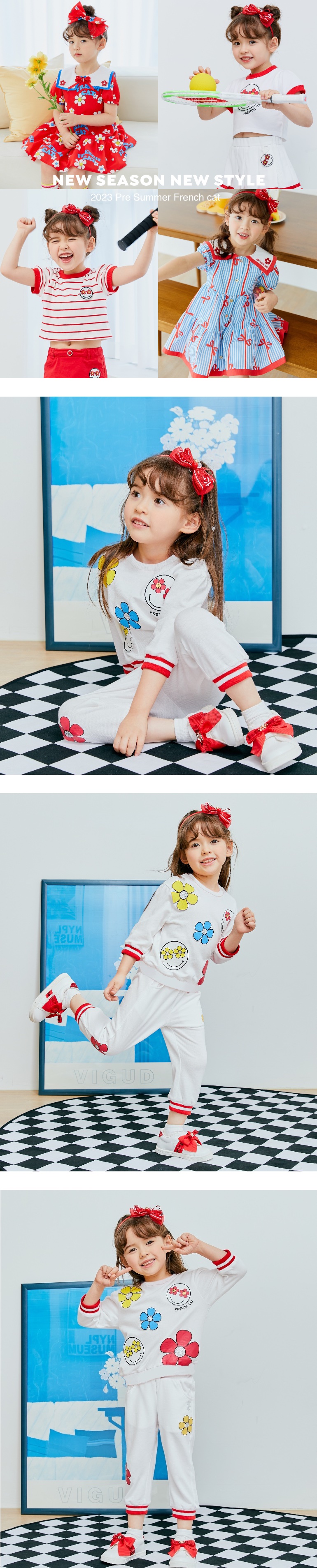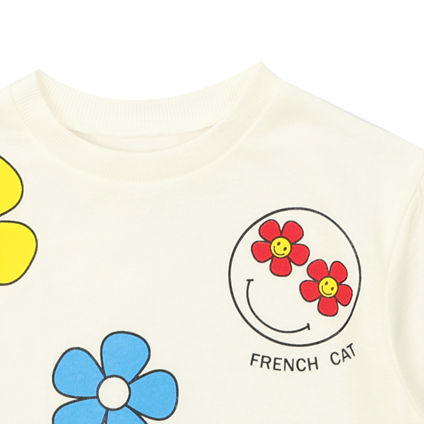 프렌치캣만의 플라워과 스마일모티브로 액티브하면서 테니스무드가 믹스업된 아이템입니다
