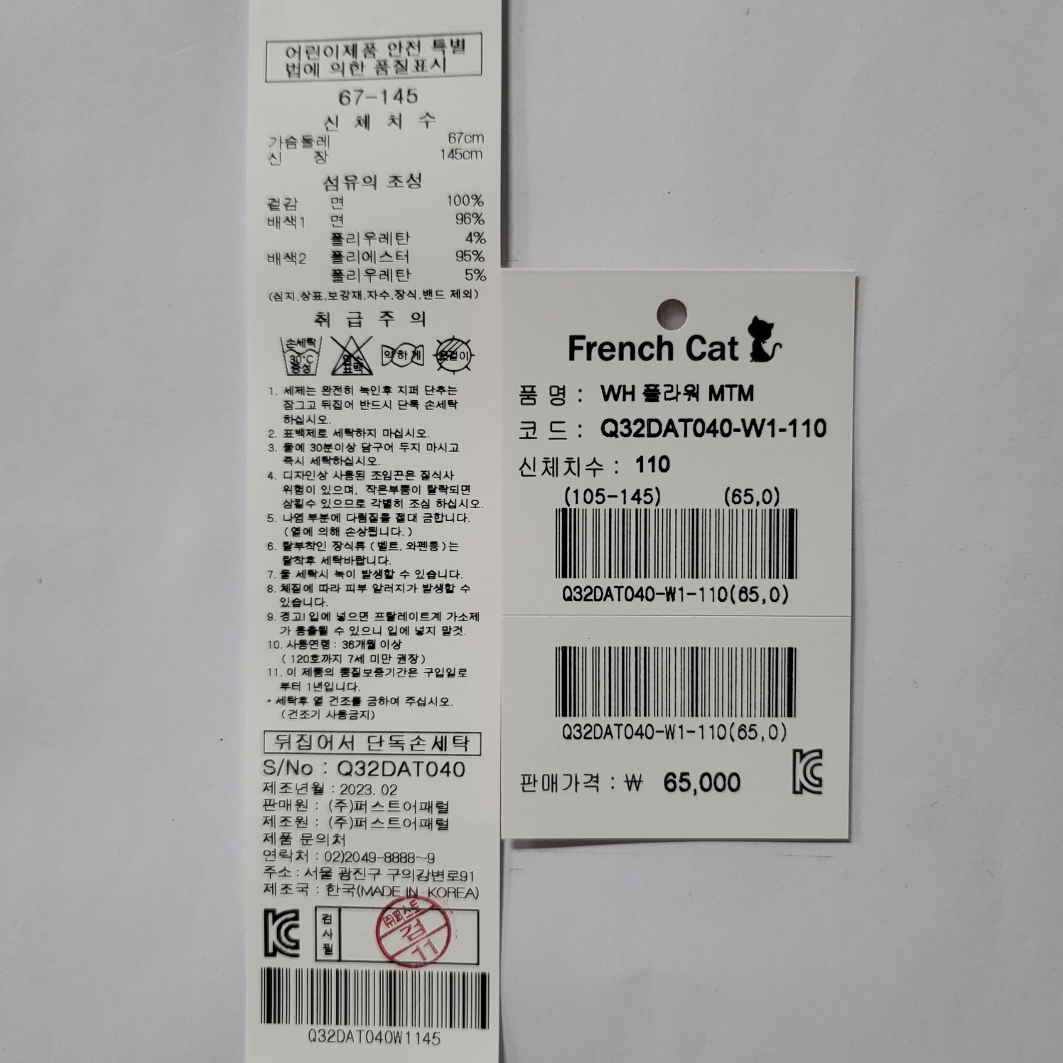 구매옵션 : 컬러 흰색 / 사이즈 130120 입는데 7부라 130 사서 입혔더니 잘 맞네요. 셋업으로 입혔더니 더 예뻤어요~