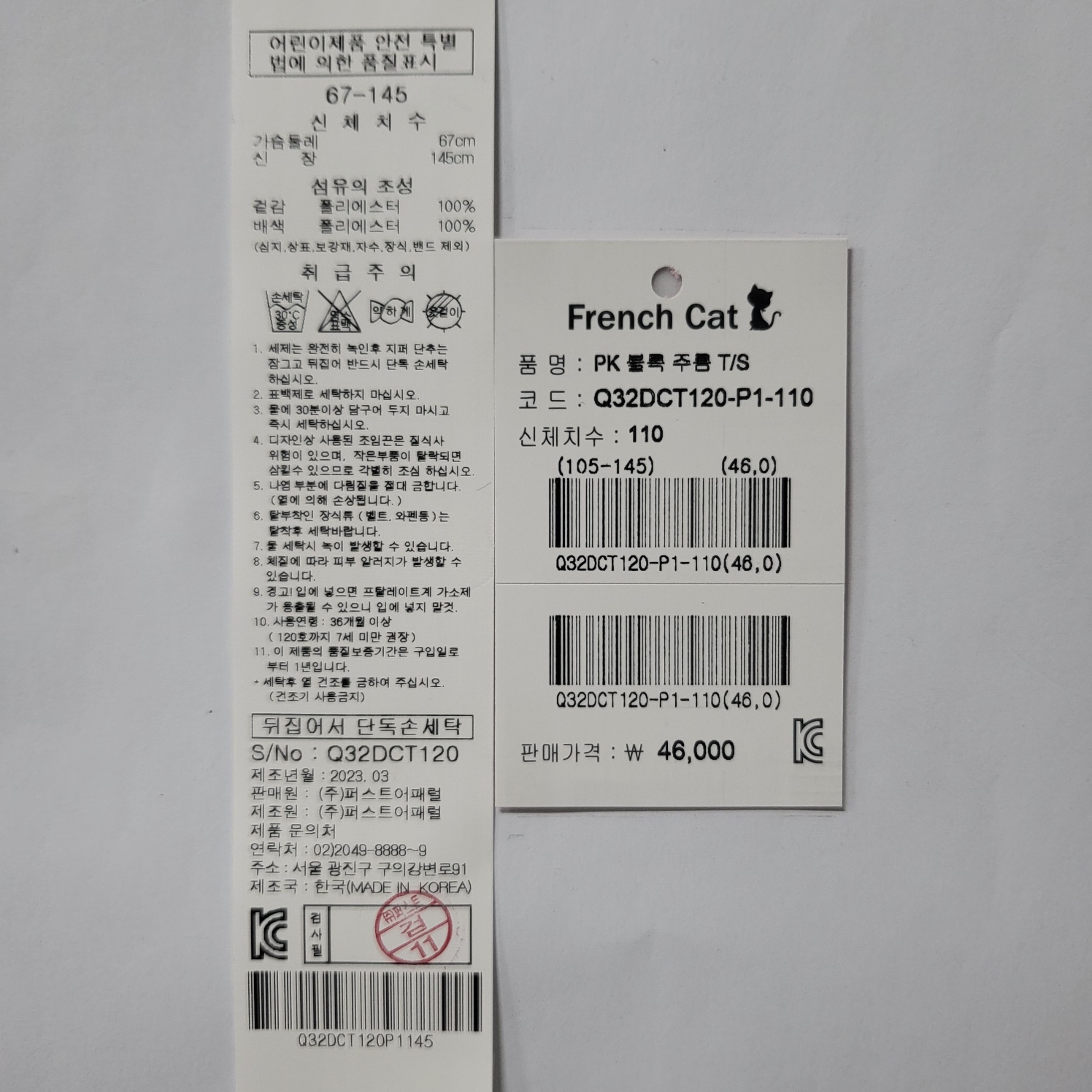 겉감 : 폴리에스테르 100%배색1: 폴리에스테르 100% -