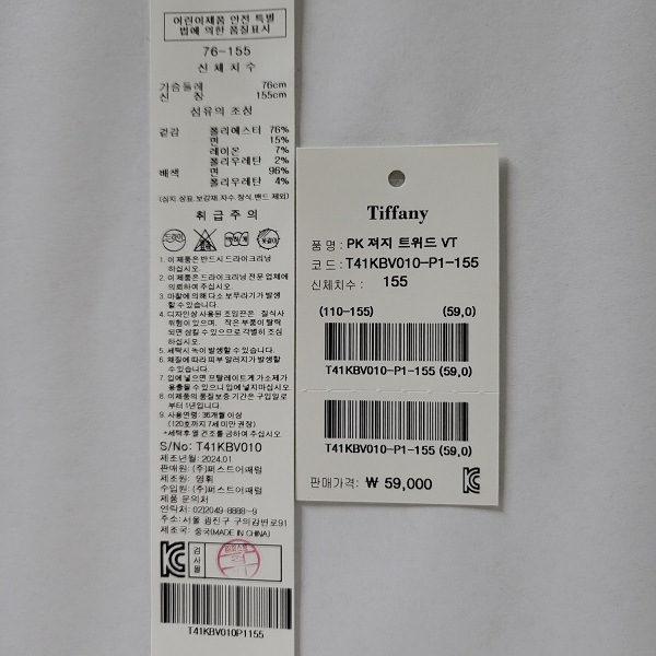 겉감 : 폴리에스터 76 면 15 레이온 7 폴리우레탄 2 배색 면 96 폴리우레탄 4 -