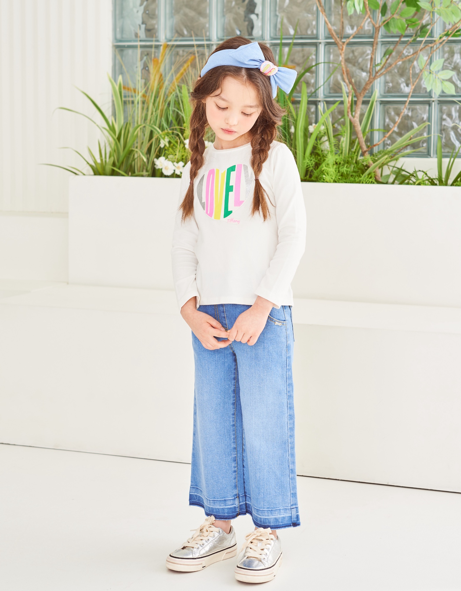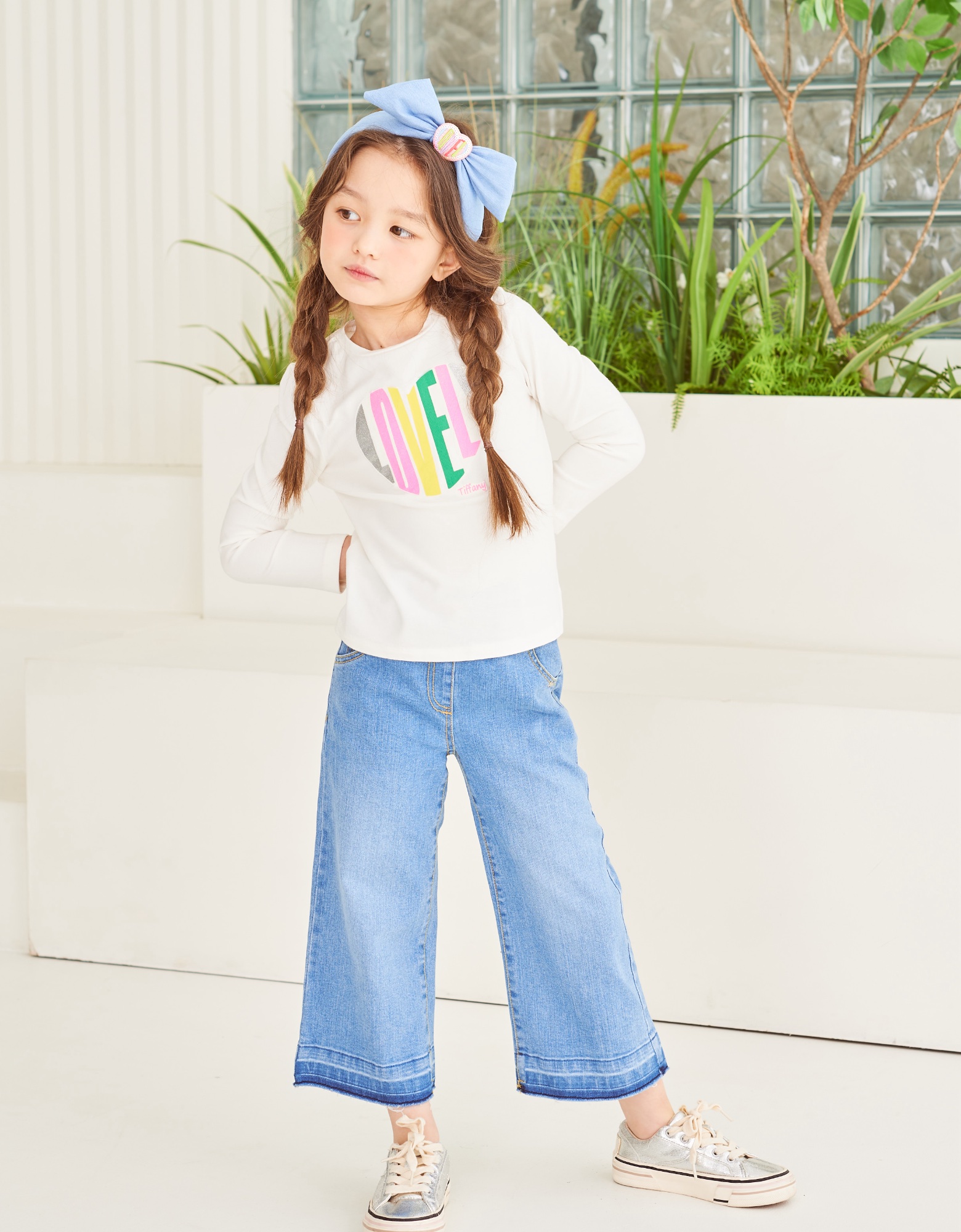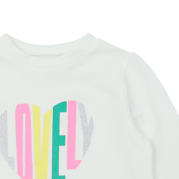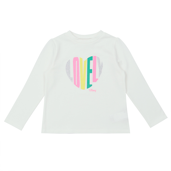 스판력좋은 기본 이너 아이보리티셔츠로 가슴에 컬러감있는 프린팅으로 사랑스러운 주는 티셔츠 어디에나 코디가능합니다.