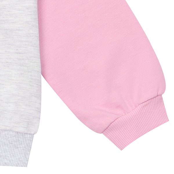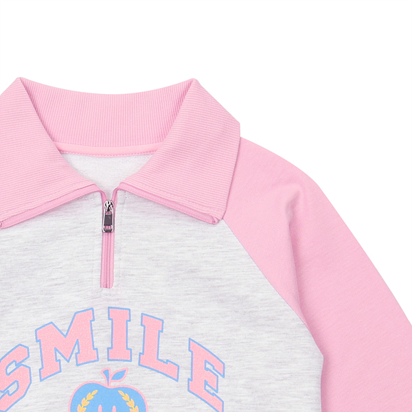 반집업 디자인으로 캐주얼하게 입기좋은 맨투맨입니다. 핑크 칼라가 배색으로 활용되어 리블리한 무드를 줍니다.