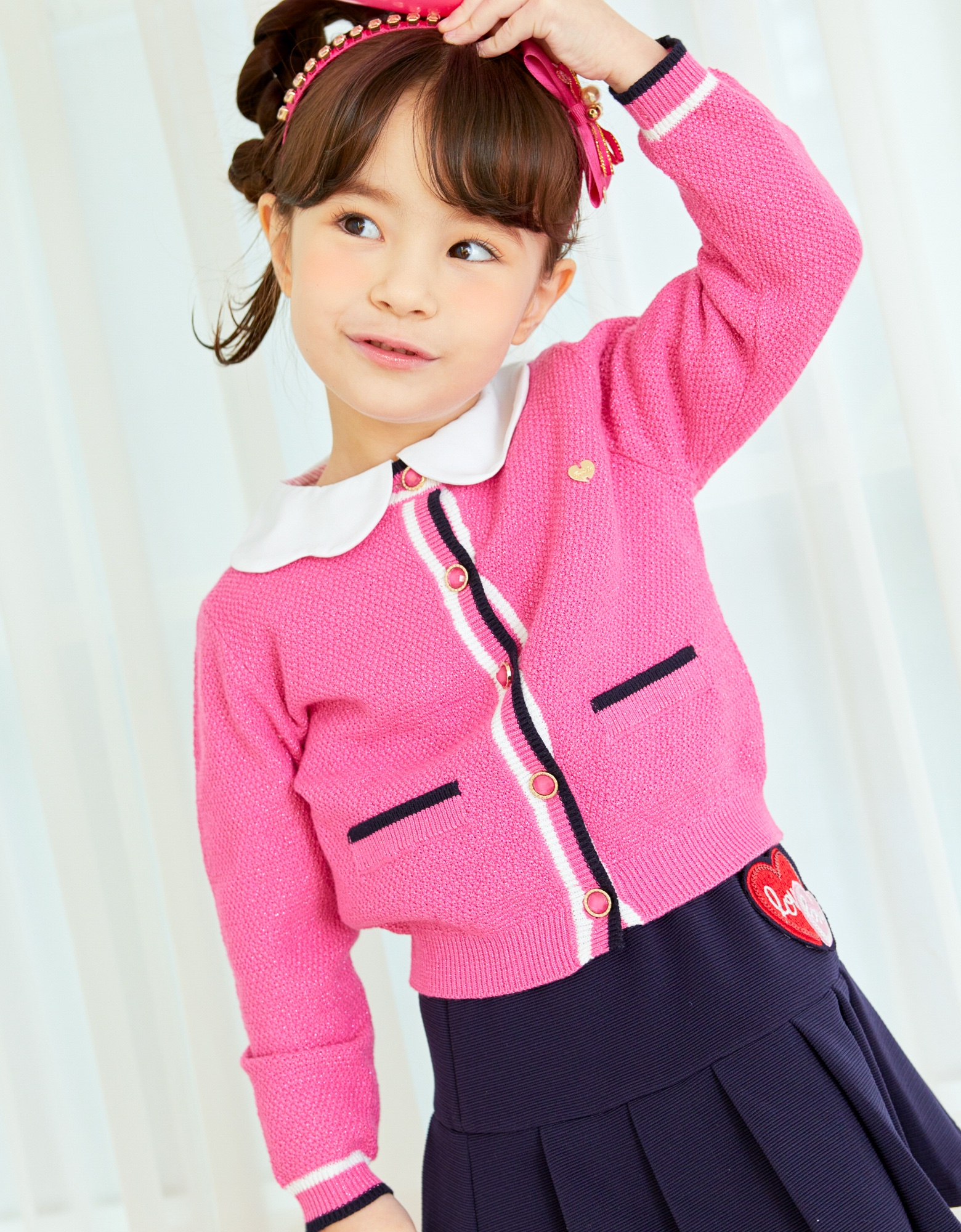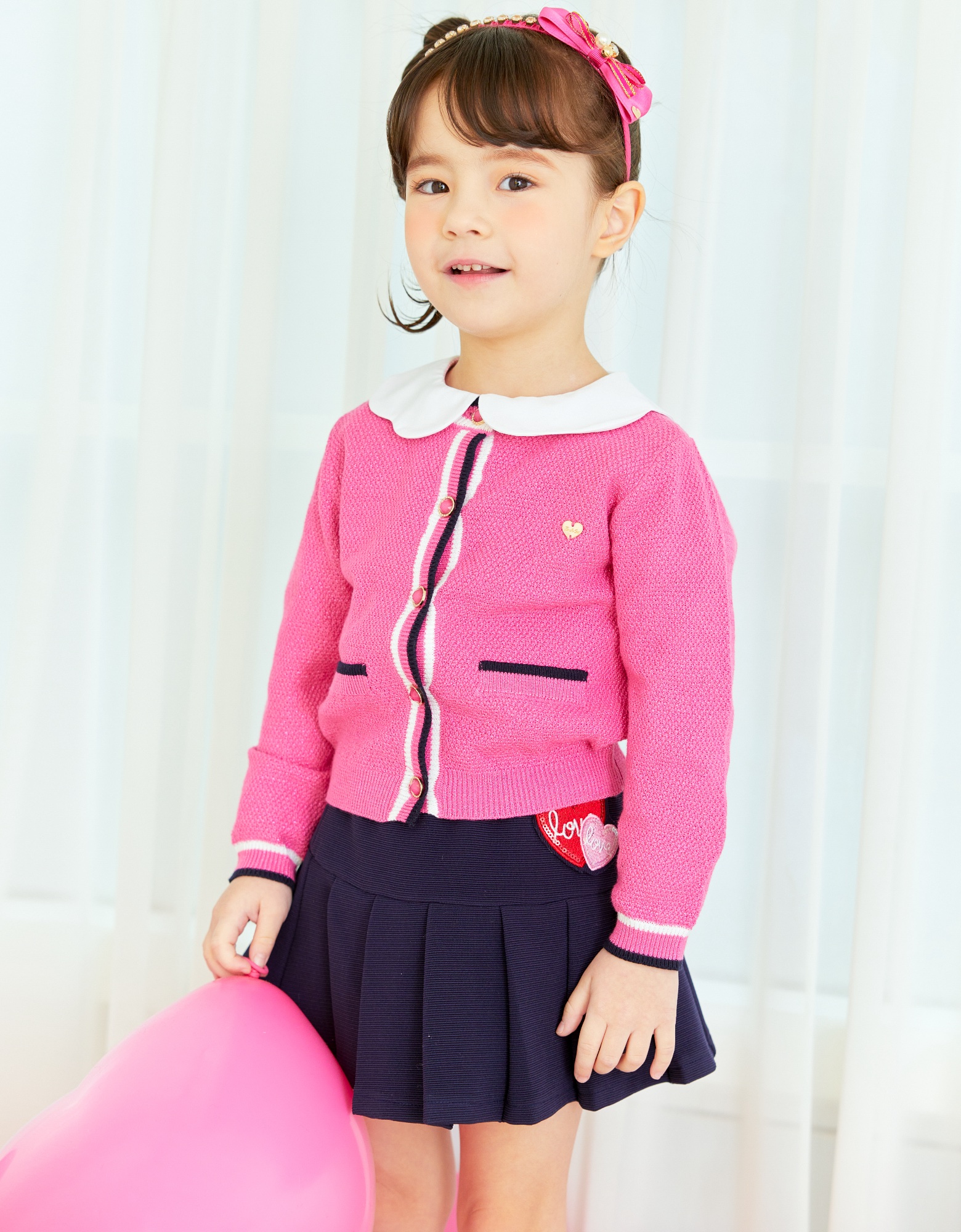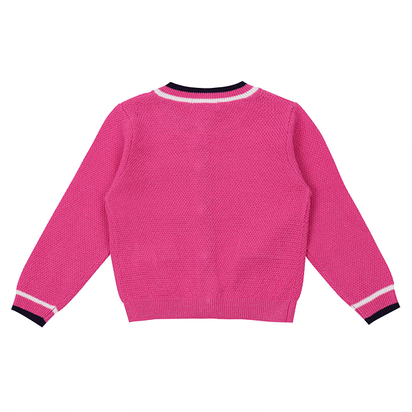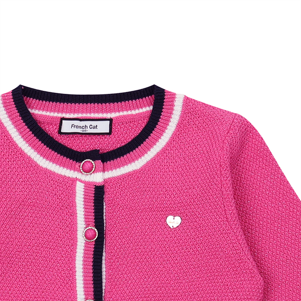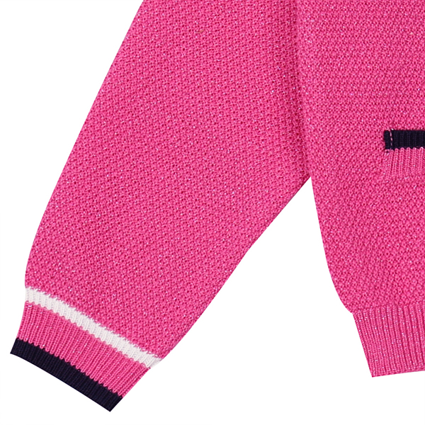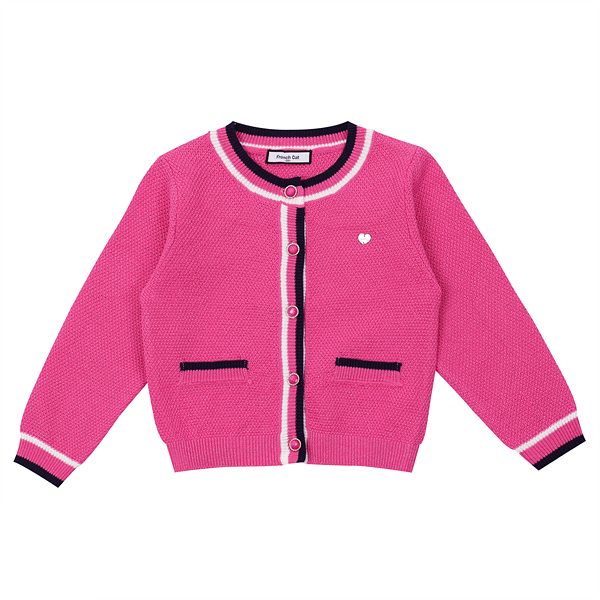 핫핑크 매칭 펄이 은은하게 섞인 실로 조직감있게 짠 가디건입니다.