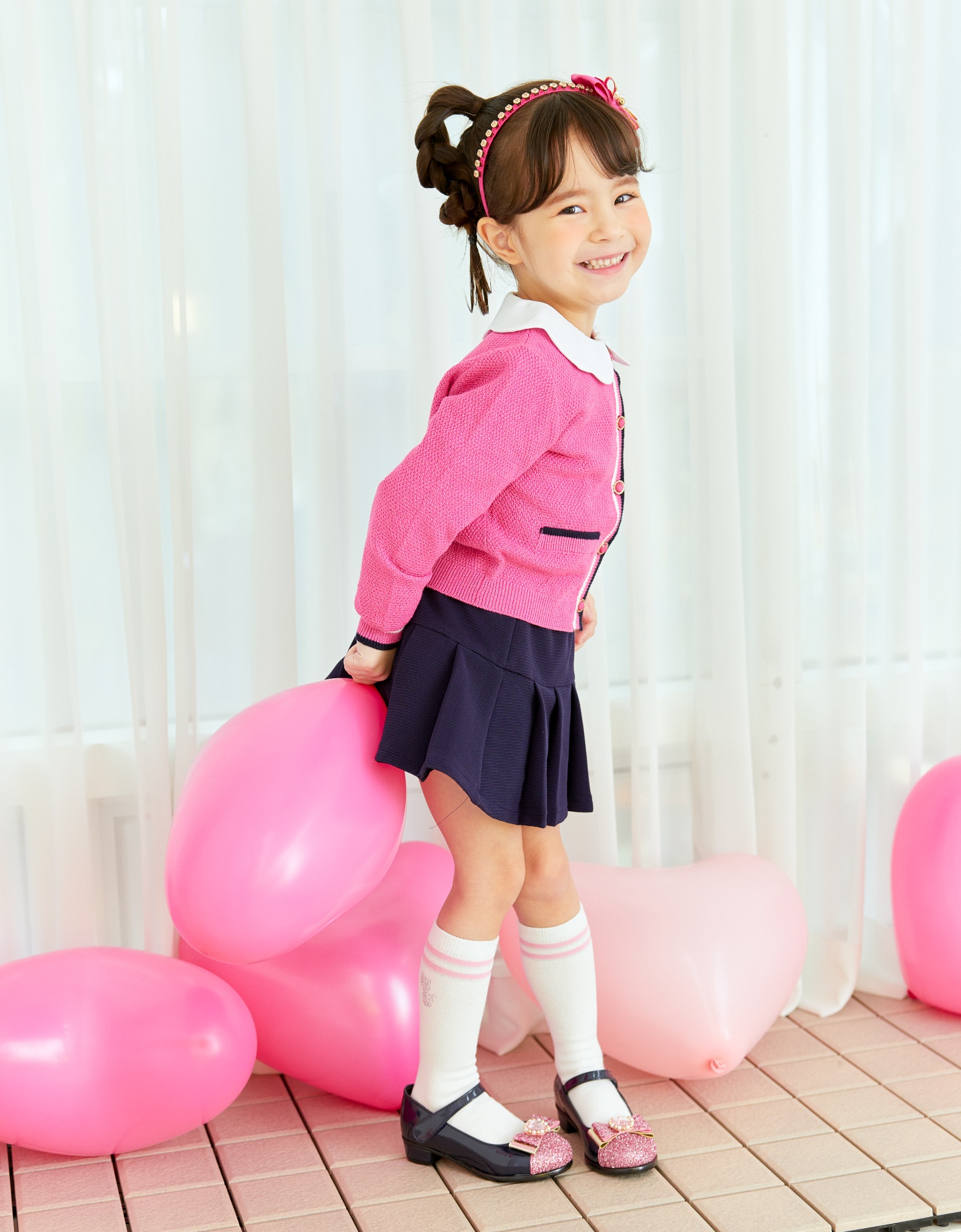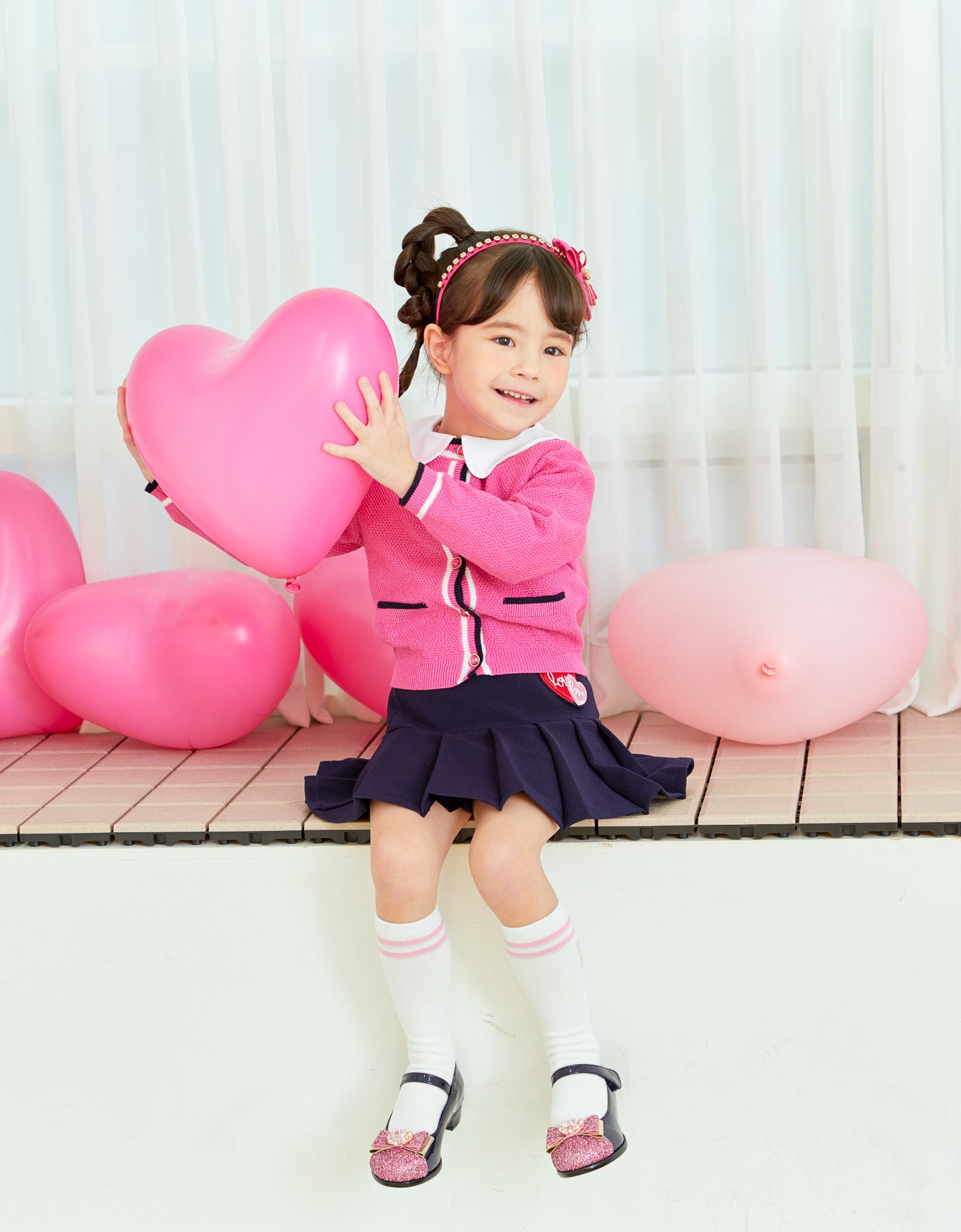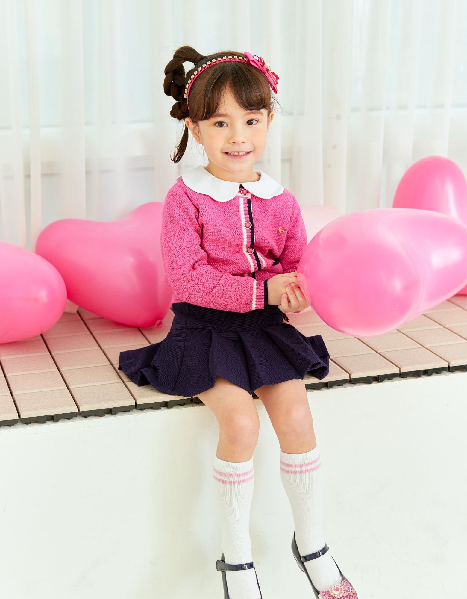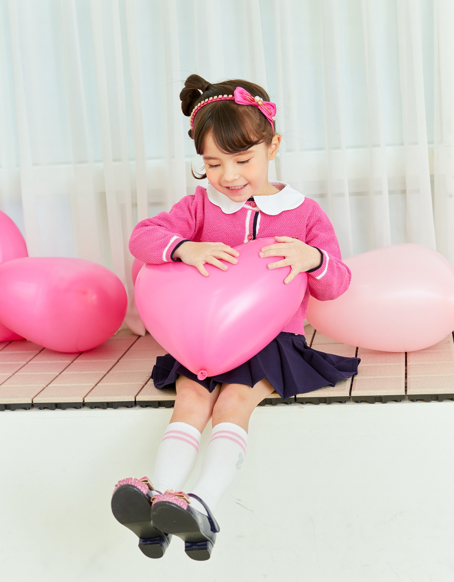 핫핑크 매칭 펄이 은은하게 섞인 실로 조직감있게 짠 가디건입니다.