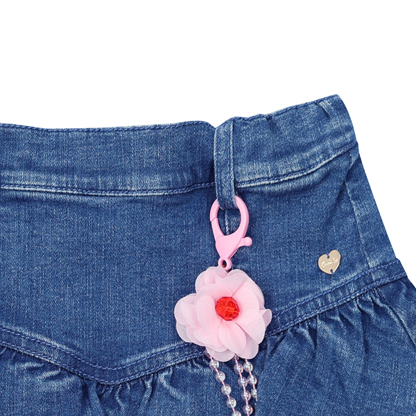 2단 프릴을 잡아줘 귀여운 무드를 살려줬으며 귀여운 꽃 장식 벨트를 달아 러블리하면서 귀여운 무드를 더욱 살린 제품 입니다.