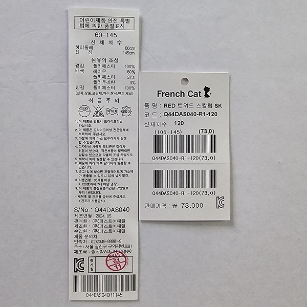 겉감 폴리에스터100배색 레이온60 폴리에스터37 폴리우레탄3안감 폴리에스터100 -