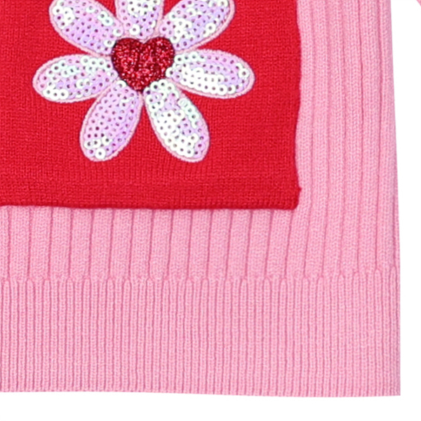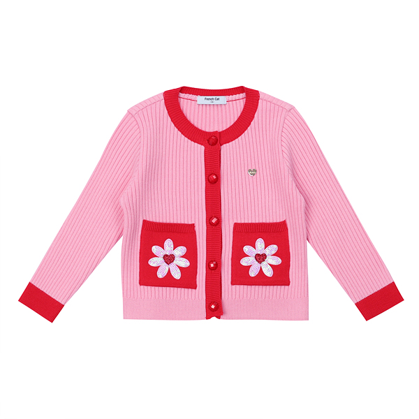 레드 로 포인트를 줘 유니크한 느낌을 살려줬으며 꽃 자수로 귀여운 무드까지 함께 보여지는 상품 입니다