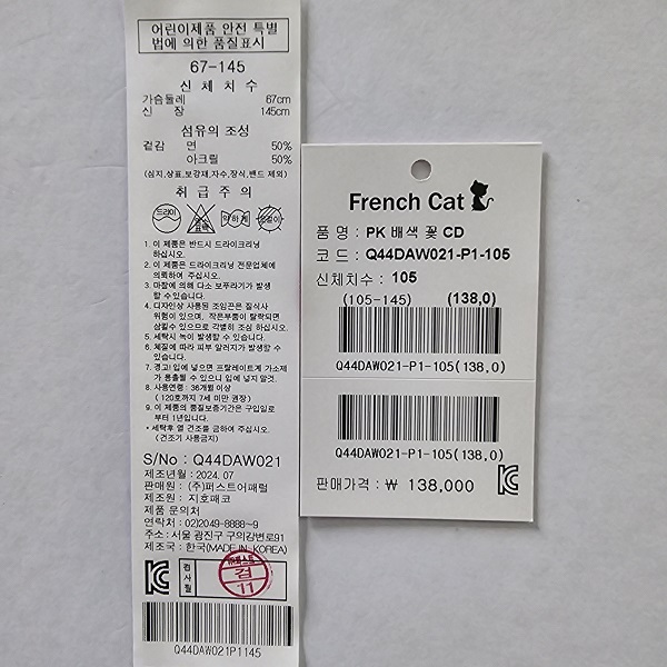 - 배송, 주문/결제, 취소/반품/교환/환불, 회원, 쿠폰/적립금, 이벤트 등의 자세한 문의사항은 고객센터 > 1:1 문의를 이용하여 주시기 바랍니다. 상품에 대한 궁금하신 내용을 문의해주세요.