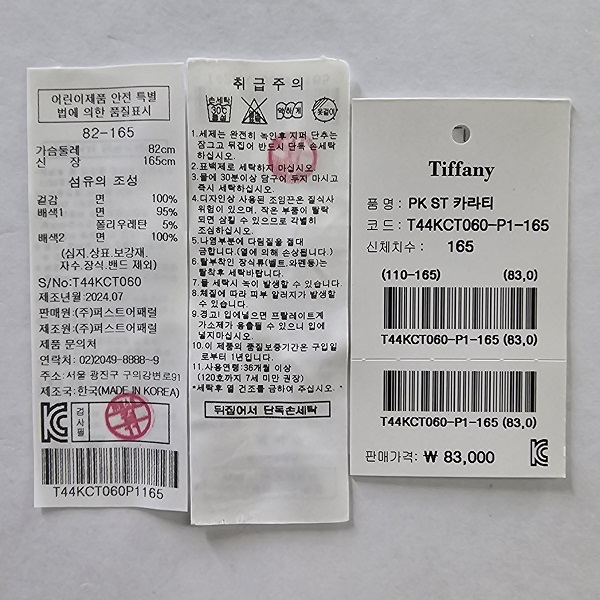 겉감 : 면 100 배색 1 면 95 폴리우레탄 5 배색 2 면 100 -