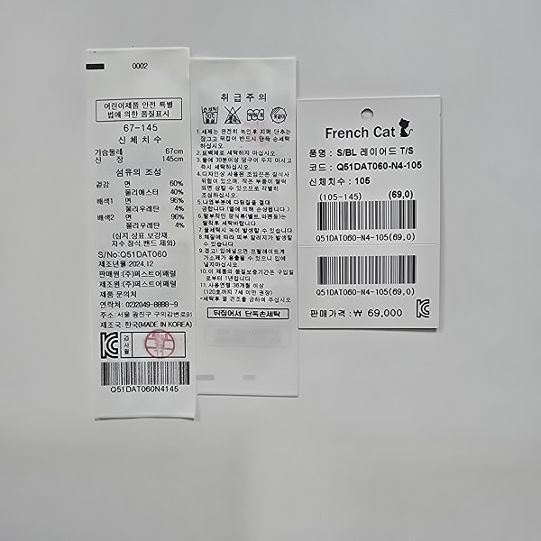 겉감 면60 폴리에스터40배색1 면96 폴리우레탄4배색2 면96 폴리우레탄4 -