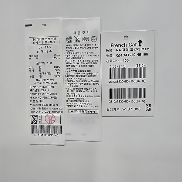 귀여운 프캣 고양이 얼굴 자수가 가슴에 포인트로 있습니다.
