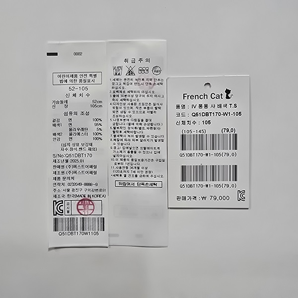 겉감 면100배색1 면95 폴리우레탄5배색2 폴리에스터100안감 면100 -