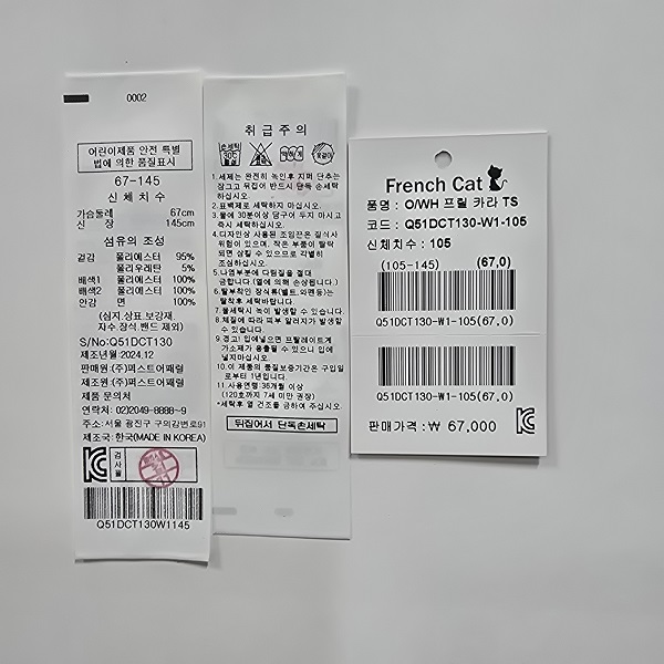 겉감 폴리에스터95 폴리우레탄5배색1 폴리에스터100배색2 폴리에스터100안감 면100 -
