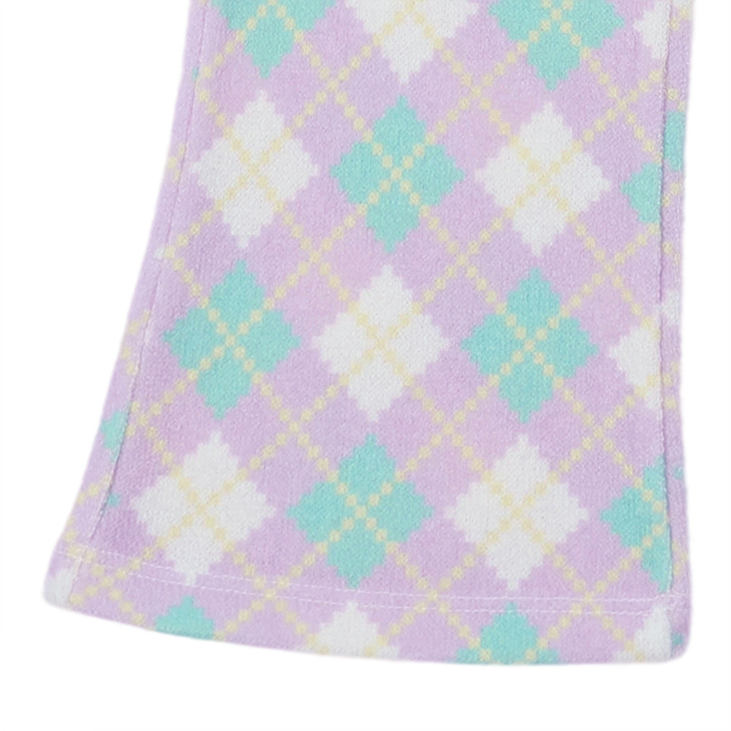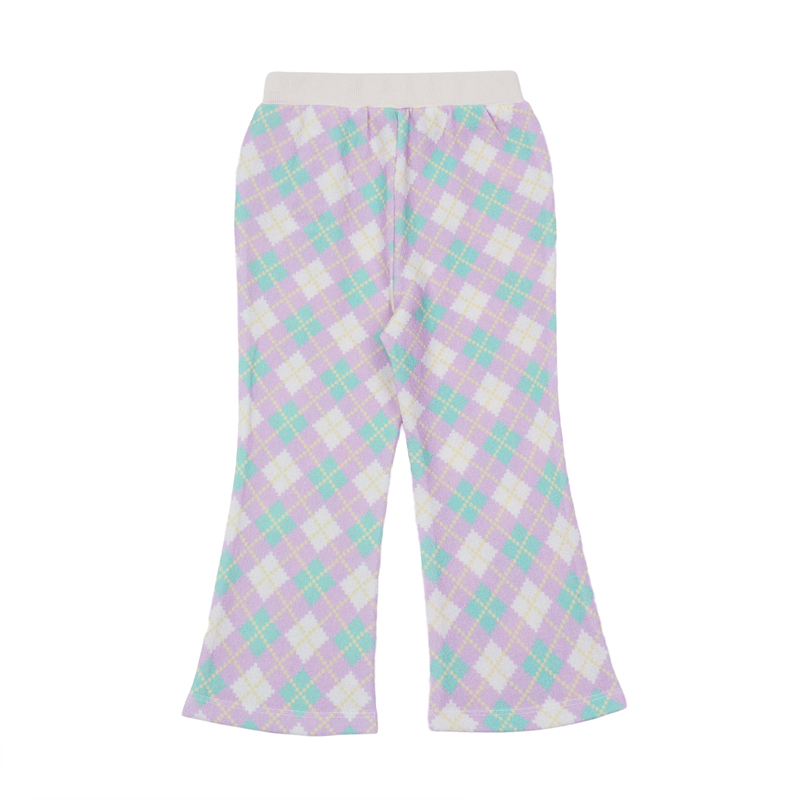 니트느낌의 원단에 체크 프린트가 경쾌한 부츠컷 핏의 팬츠입니다.