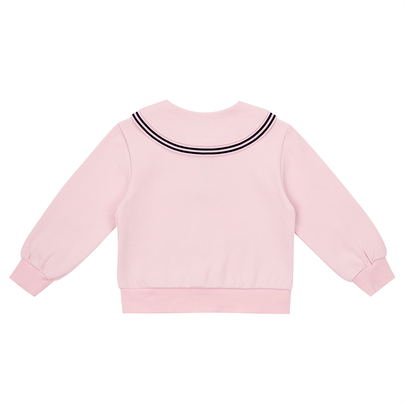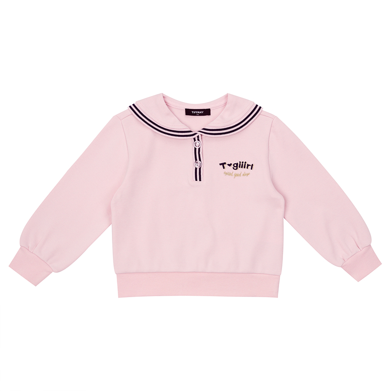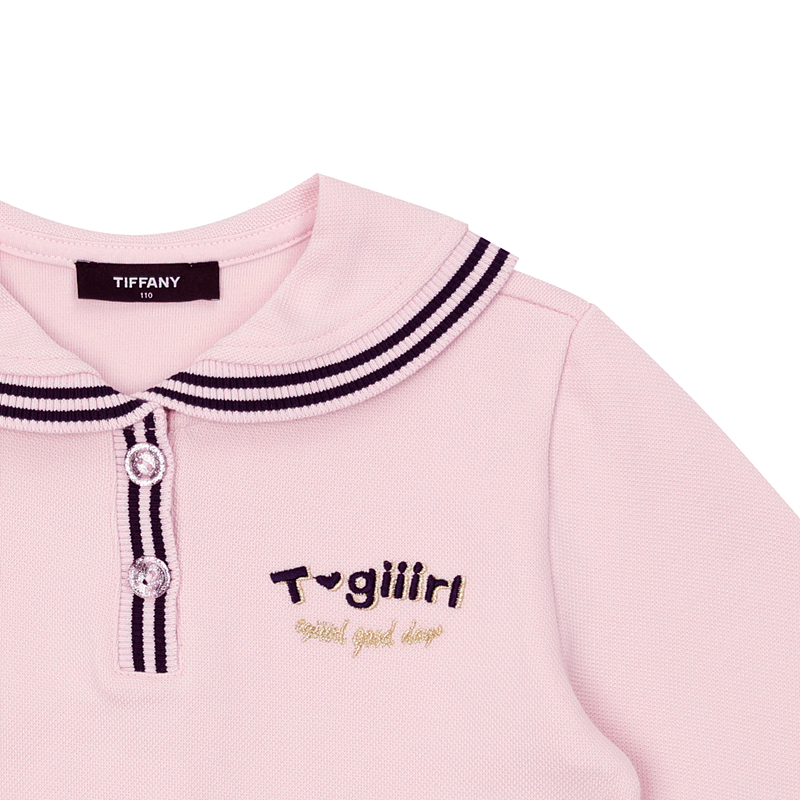 피케 소재 카라티 스타일로 세일러 느낌의 카라 끝에 스트라이프 시보리 장식으로 포인트를 준 티셔츠입니다. 앞여밈도 스트라이프 시보리로 해서 깔끔함을 살리고 로고 자수로 포인트를 주었습니다.