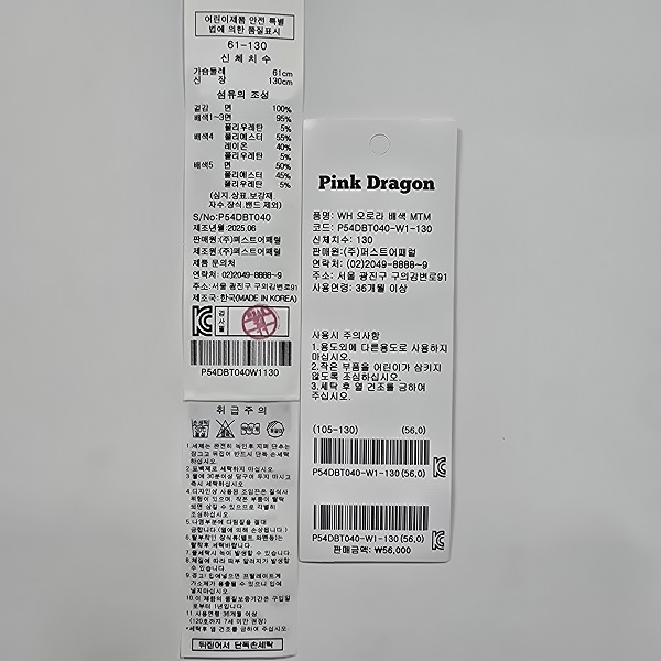겉감 : 면 100 배색 1 ~ 3 면 95 폴리우레탄 5 배색 4 폴리에스터 55 레이온 40 폴리우레탄 5 배색 5 면 50 폴리에스터 45 폴리우레탄 5 -