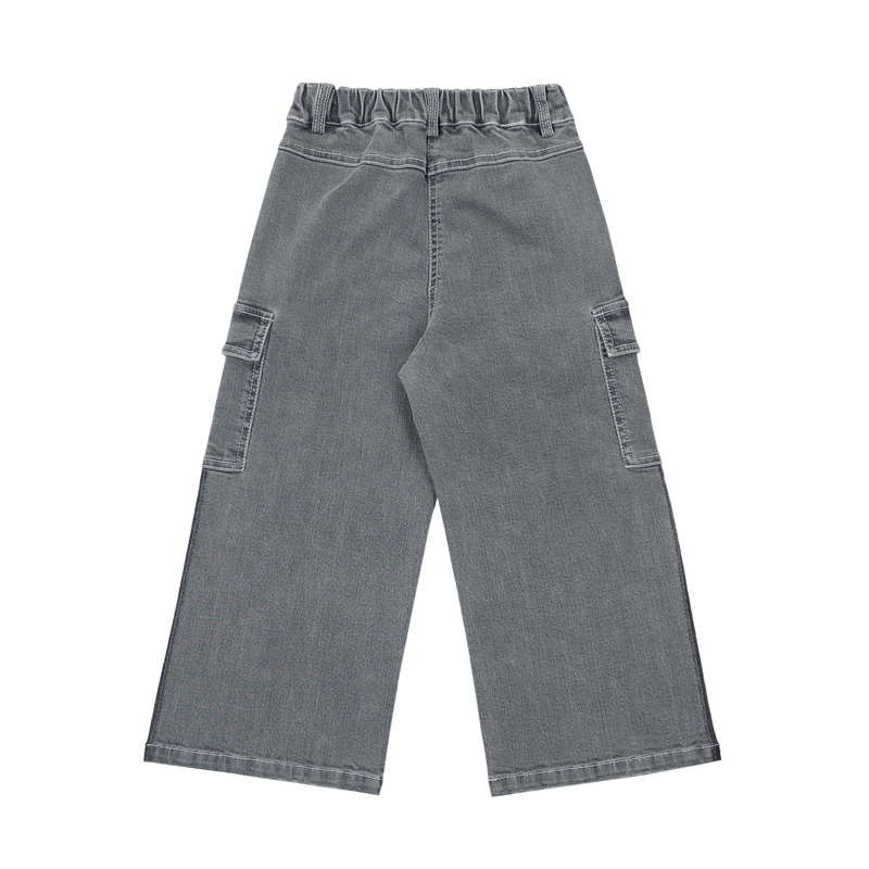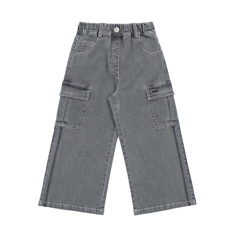 그레이 계열로 워싱 처리한 카고 데님 팬츠입니다. 옆 라인에 주름 아웃포켓과 옆선에 TAPE 뜯는 워싱으로 컬러 톤 차이를 주 워싱감을 살려 주었습니다.