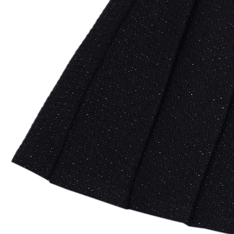 은은한 펄감이 있는 트위드 소재 주름 스커트입니다. 허리는 펄밴드로 착용이 쉬운 스타일입니다. 같은 소재 뷔스티에(T54KAV010)과 코디하여 원피스처럼 연출이 가능합니다.