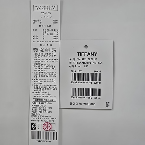 겉감 : 폴리에스터 80 레이온 17 폴리우레탄 3 배색 1 면 100 배색 2 면 100 -