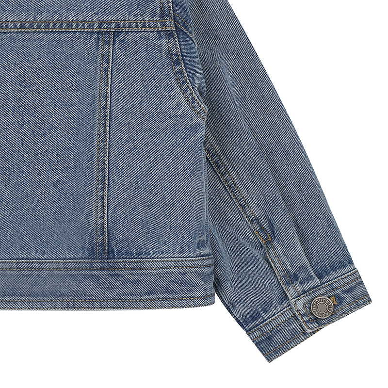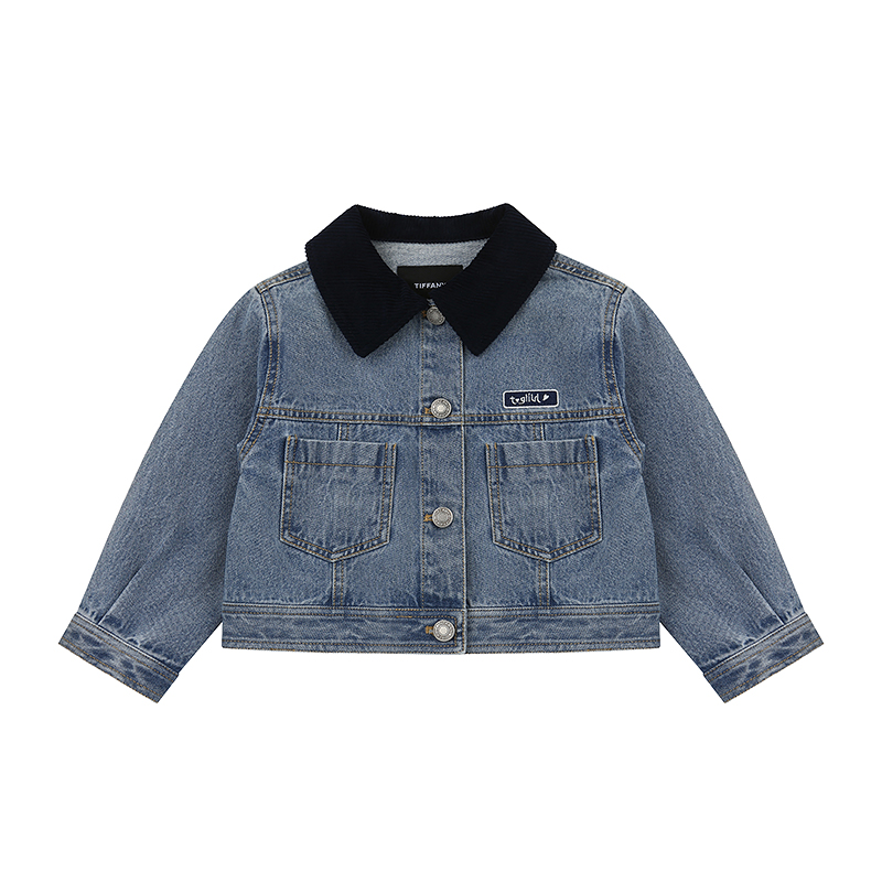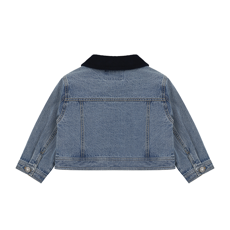 실플하면서 클래식한 데님 쟈켓에 네이비 컬러 코듀로이 소재를 배색하여 포인트를 준 스타일리쉬한