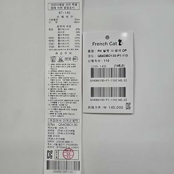 겉감 폴리에스터63 레이온24 폴리우레탄13배색1 폴리에스터100배색2 폴리에스터100안감2 폴리에스터100안감2 폴리에스터100 -
