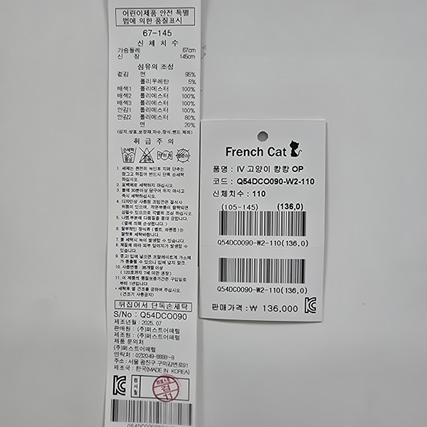 - 배송, 주문/결제, 취소/반품/교환/환불, 회원, 쿠폰/적립금, 이벤트 등의 자세한 문의사항은 고객센터 > 1:1 문의를 이용하여 주시기 바랍니다. 상품에 대한 궁금하신 내용을 문의해주세요.