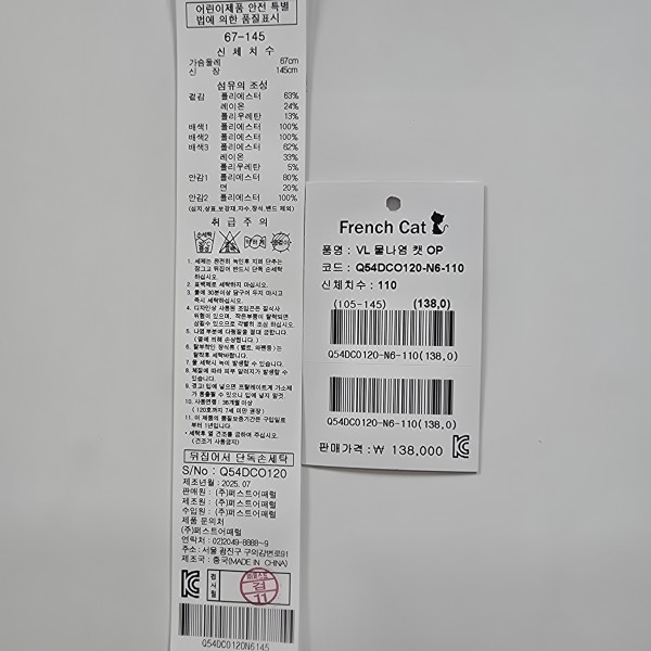 겉감 폴리에스터63 레이온24 폴리우레탄13배색1 폴리에스터100배색2 폴리에스터100배색3 폴리에스터62 레이온33 폴리우레탄5안감1 폴리에스터80 면20안감2 폴리에스터100 -